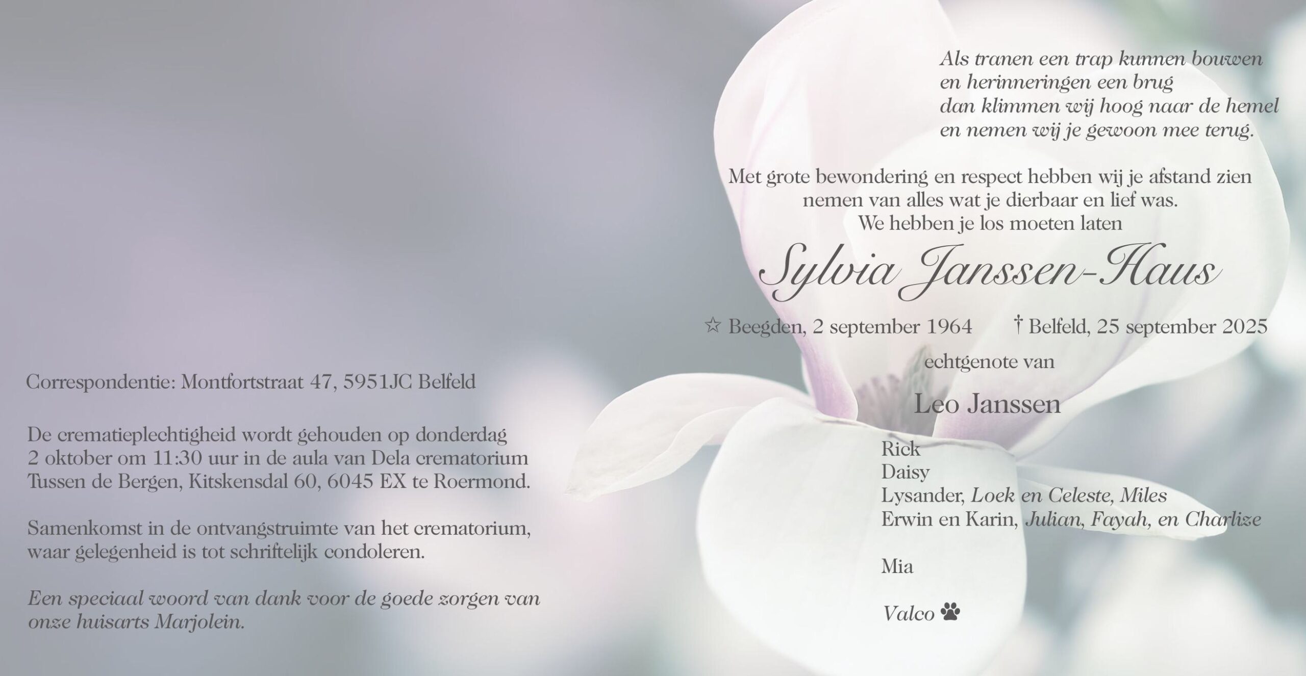 In memoriam: Sylvia Janssen – Haus